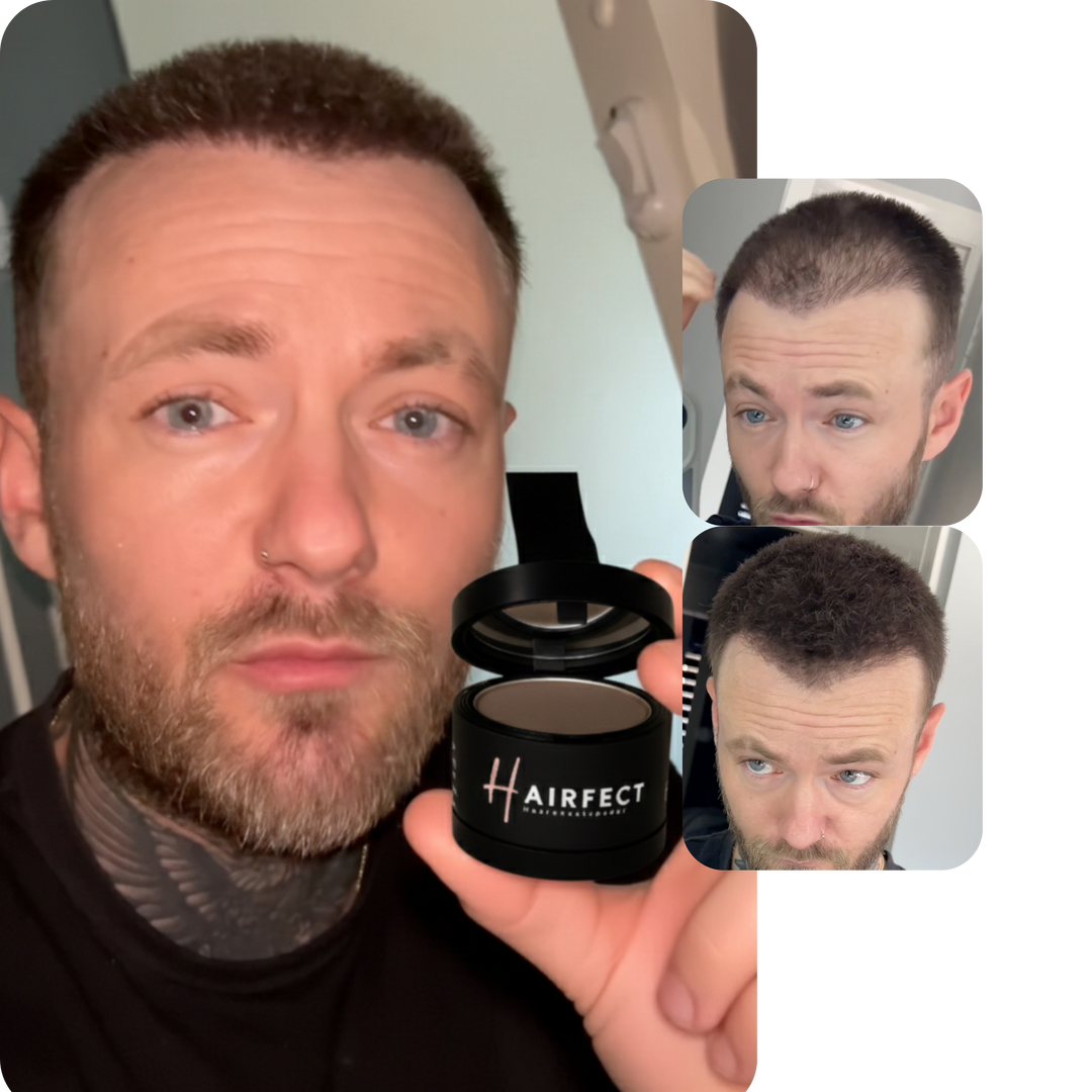 „Einfach top! Meine Kumpels konnten es kaum glauben – mein Haar wirkt sofort voller und die kahlen Stellen sind weg. Endlich muss ich mir keine Gedanken mehr machen und trete viel selbstbewusster auf.“