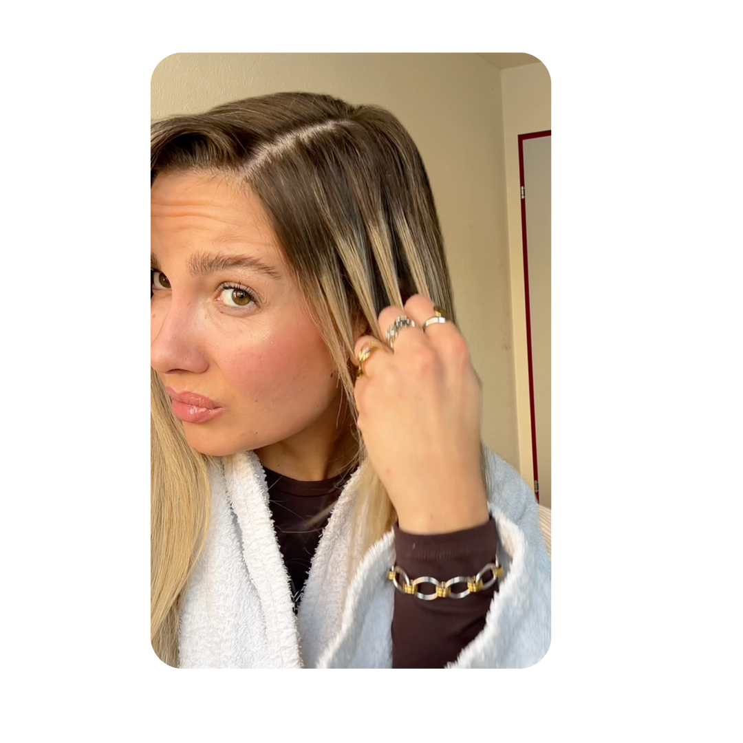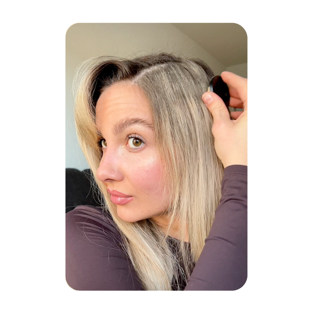 4️⃣ Ansatz perfektionieren – Für ein natürliches Ergebnis in Wuchsrichtung des Haares auftragen.